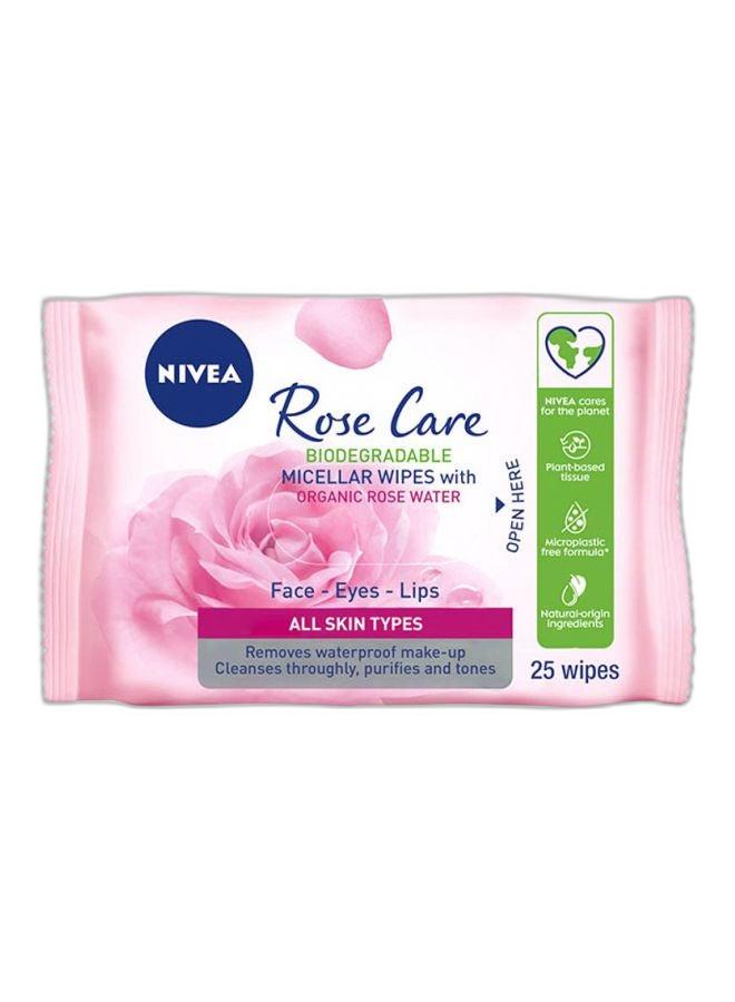 25 منديل تنظيف ميسيلار عضوي وردي مصنوع من ماء الورد.