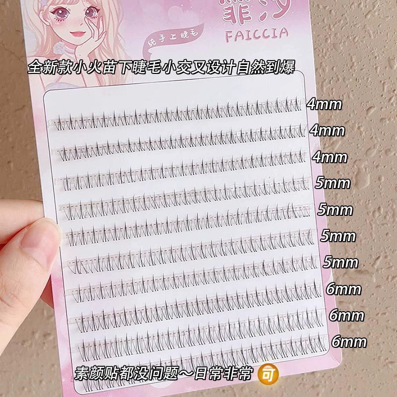 تحتوي الرموش السفلية لـ Fei Xi على سيقان شفافة وألسنة لهب صغيرة تبدو مزيفة بدون مكياج.