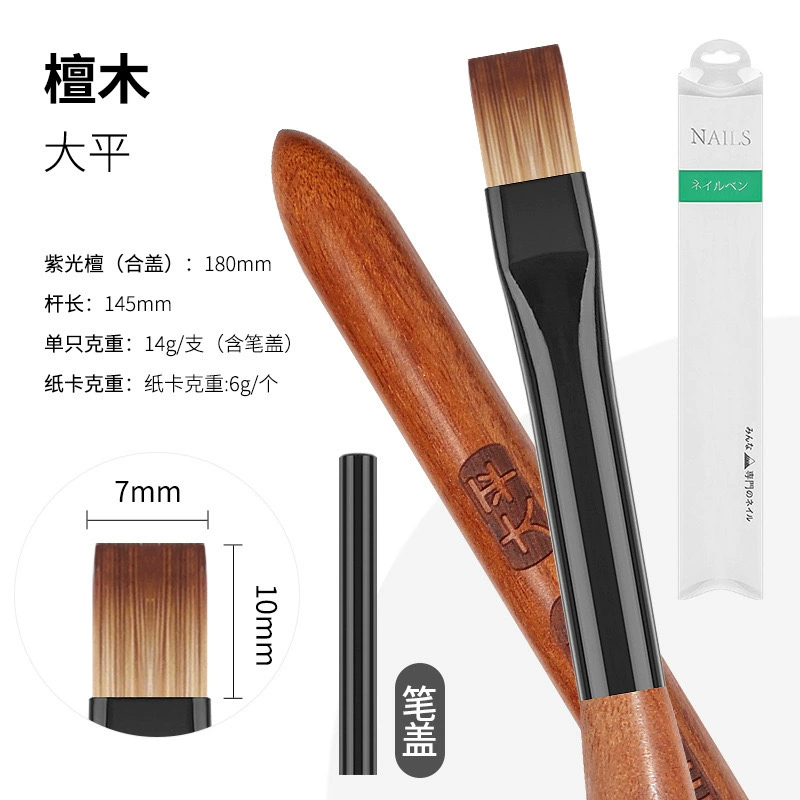 قلم مانيكير من خشب الصندل الياباني، قلم علاج ضوئي مطلي، عمود خشبي رقيق ورقيق، رأس مستدير مربع كبير، رأس مسطح، قلم خاص لملء الغراء