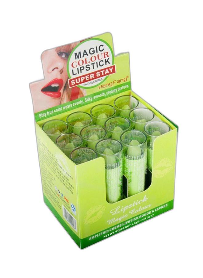 مجموعة من 12 قطعة من أحمر الشفاه الأخضر المتغير اللون.