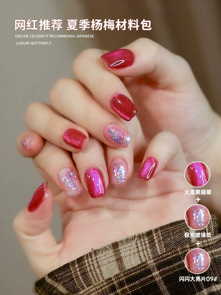 طلاء أظافر بلون فاكهة التنين، لون أحمر ثلجي كريستالي، عين القطة