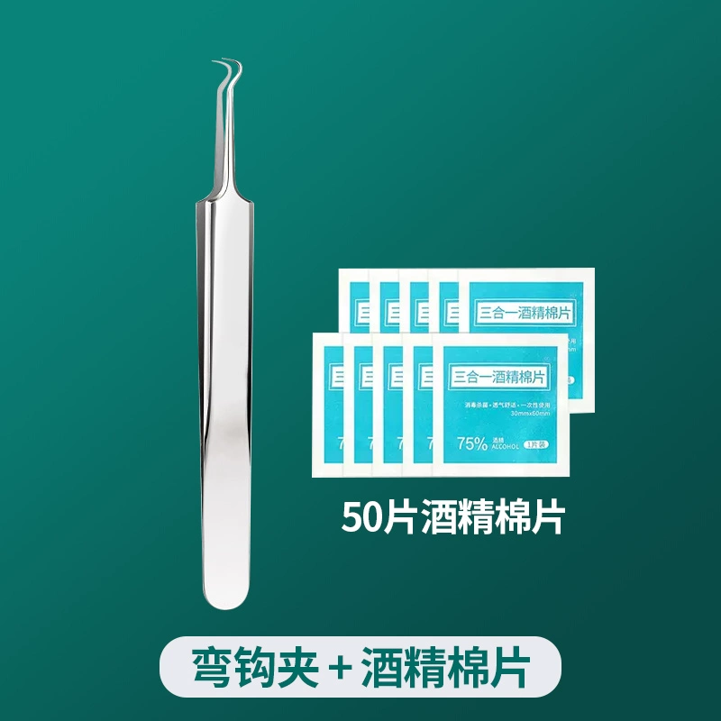 أداة تنظيف حب الشباب بمشبك منحني من Nabaobei لإزالة الرؤوس السوداء ومشبك خلية أثرية وإبرة حب الشباب وإزالة حب الشباب وملاقط ضغط الفم المغلقة