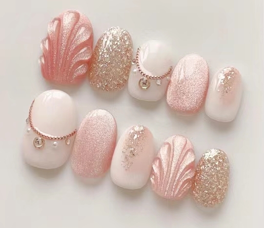 الأظافر المصنوعة يدويًا، الأظافر المزيفة، أظافر العلاج بالضوء، قلادة صدفة وردية متقدمة، مانيكير على الطريقة اليابانية، مانيكير على الطراز الداخلي