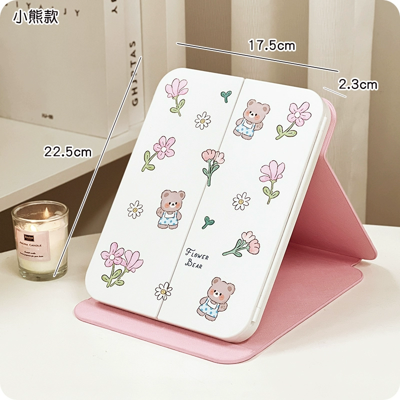 مرآة مكياج لطيفة على شكل زهرة التوليب المملوءة بالرسوم المتحركة للفتيات