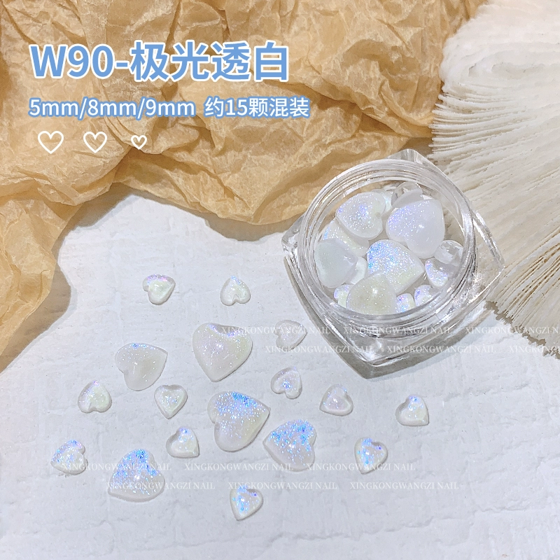 مانيكير حلية خرافية حالمة لؤلؤية لامعة على شكل قلب