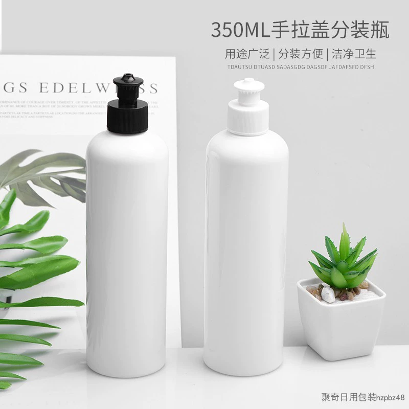 350 مل أبيض مستدير مع غطاء سحب يدوي، زجاجة منظف منظف، زجاجة بلاستيكية بديلة لمنظفات ملابس الأطفال