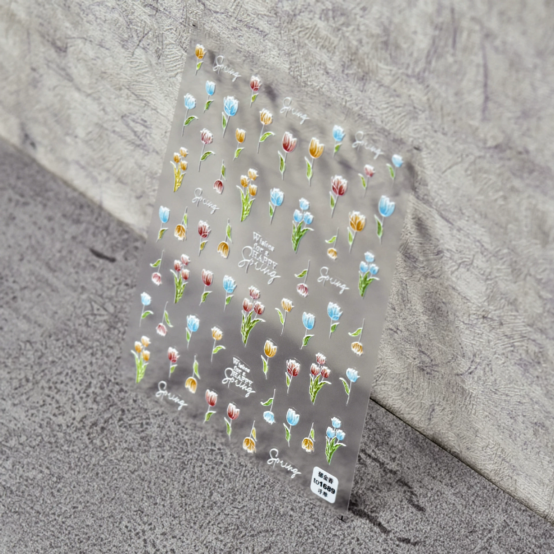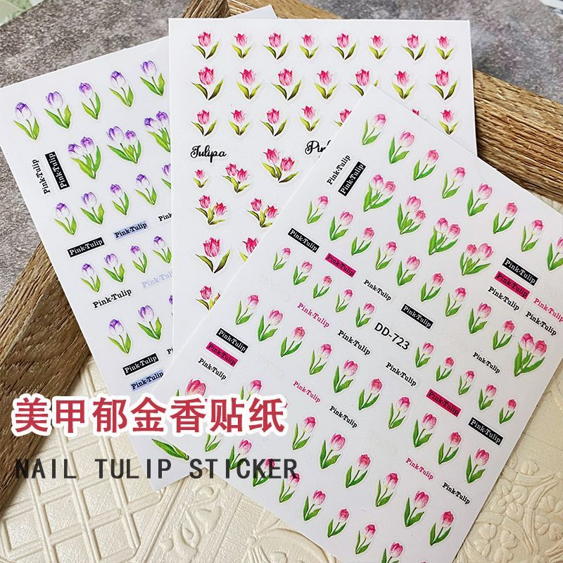 ملصقات مانيكير لاصقة على شكل قلب من زهرة التوليب الربيعية