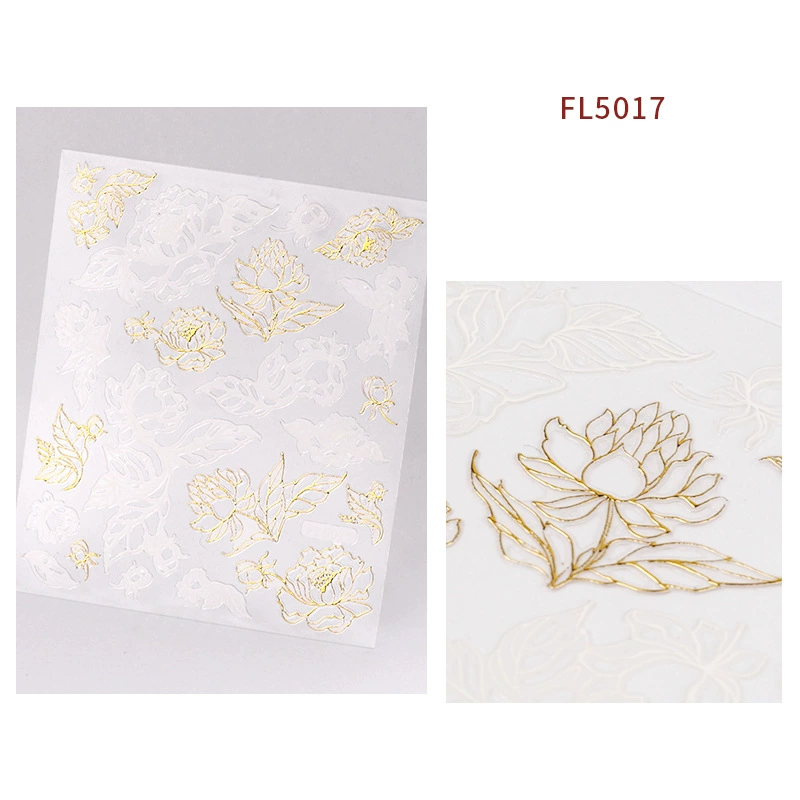 ملصقات فنية للأظافر بختم ساخن وخطوط زهور من الدانتيل بنمط هندسي ملصقات أظافر ثلاثية الأبعاد