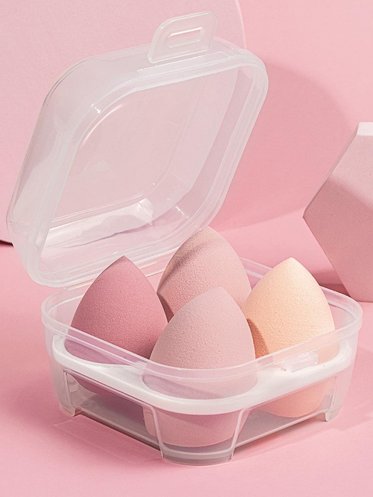 صندوق بلاستيكي شفاف لتخزين بيض التجميل، صغير الحجم وقابل للحمل.