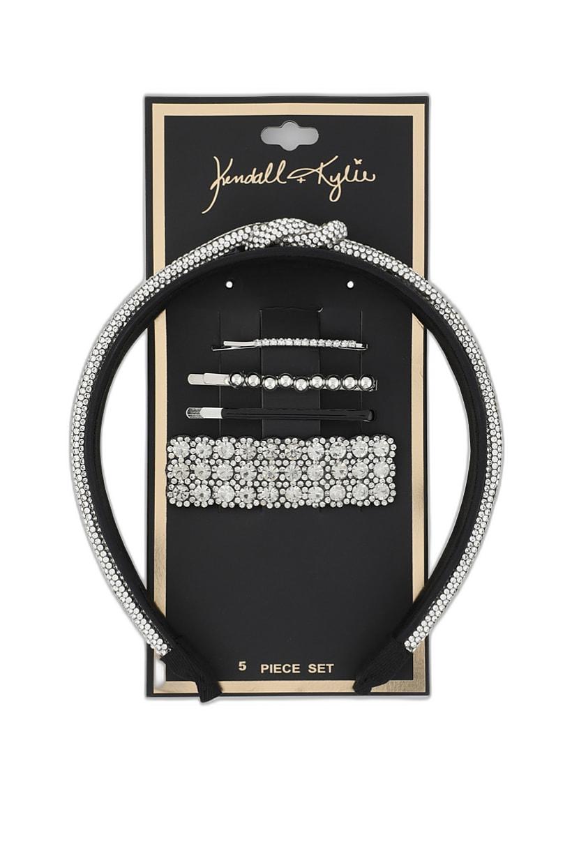 مجموعة من 5 إكسسوارات شعر للنساء ذات لمعان فضي وأسود.