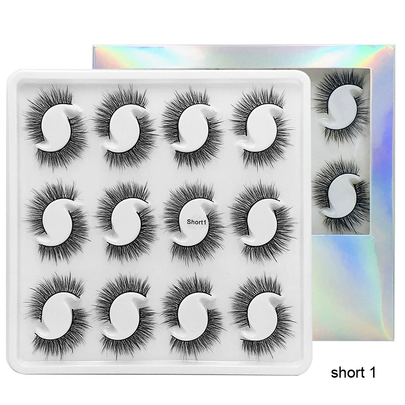 12 زوجًا من الرموش الصناعية ثلاثية الأبعاد الطبيعية المصنوعة يدويًا، رموش قصيرة