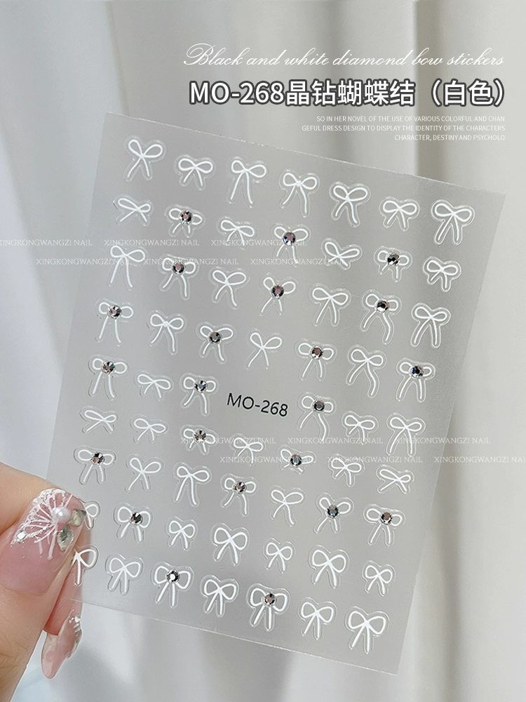ملصق على شكل فيونكة فنية للأظافر مع ربطة عنق على شكل فيونكة من الألماس الكريستالي باللونين الأبيض والأسود من الحرير، ملصق ياباني لطيف لتزيين الأظافر بنفسك