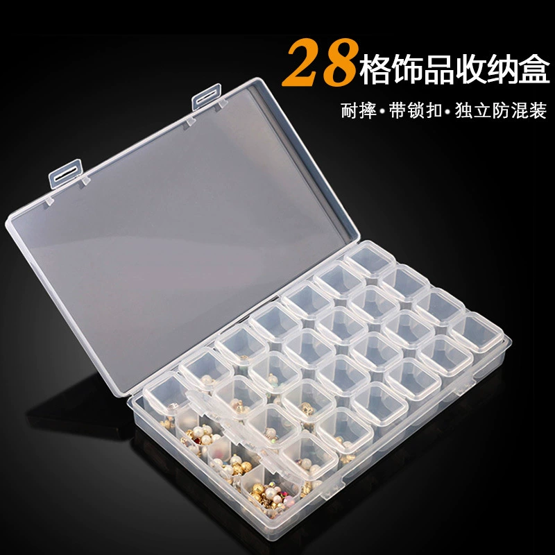 صندوق ألماس لفن الأظافر لا يتسرب الماس، صندوق ألماس مجوهرات أظافر شفاف مكون من 28 شبكة، صندوق ألماس مقسم، صندوق تخزين صغير للإكسسوارات