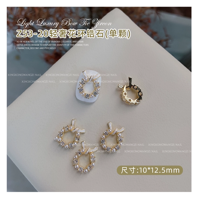 إكليل عيد الميلاد الشهير على الإنترنت مانيكير الزركون ضوء جديد فاخر لؤلؤ مرصع بالألماس تزيين الأظافر قطعة واحدة Z53