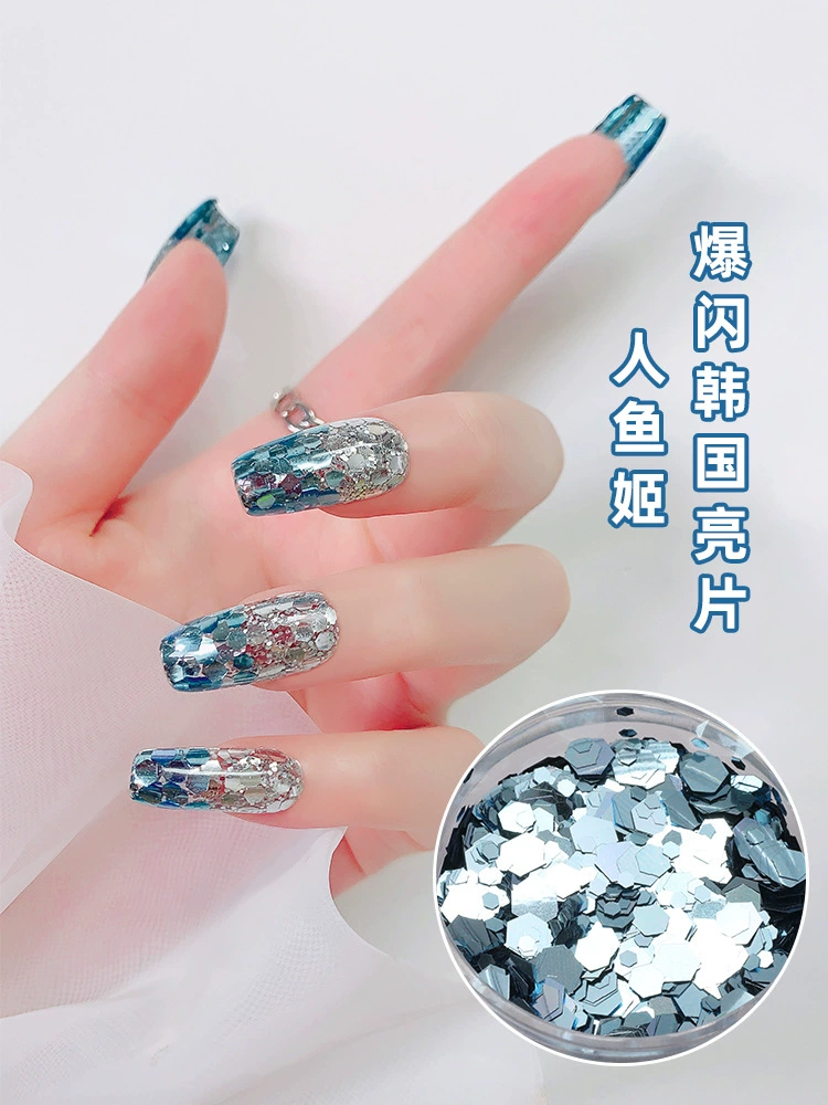مانيكير حورية البحر الكوري باللون الأزرق المائي