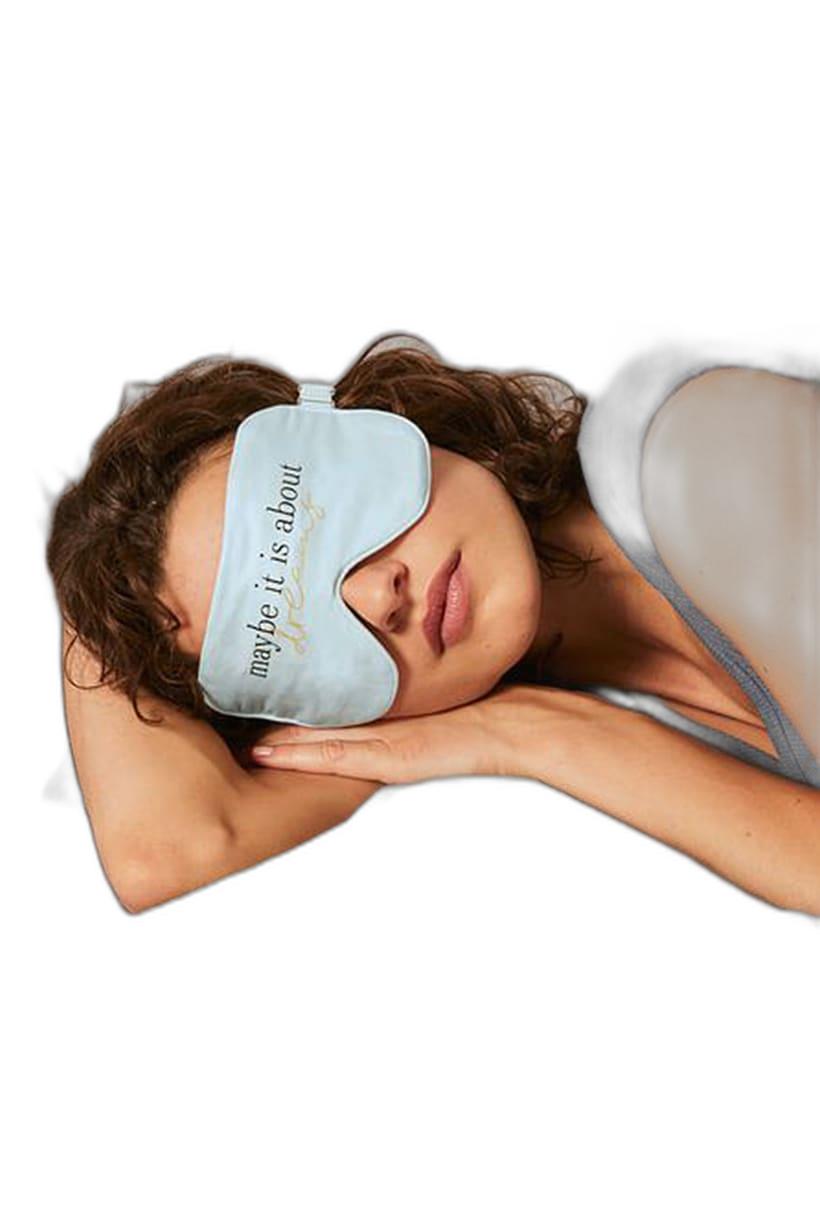قناع النوم باللون الأزرق الفاتح مع طباعة رسومية.