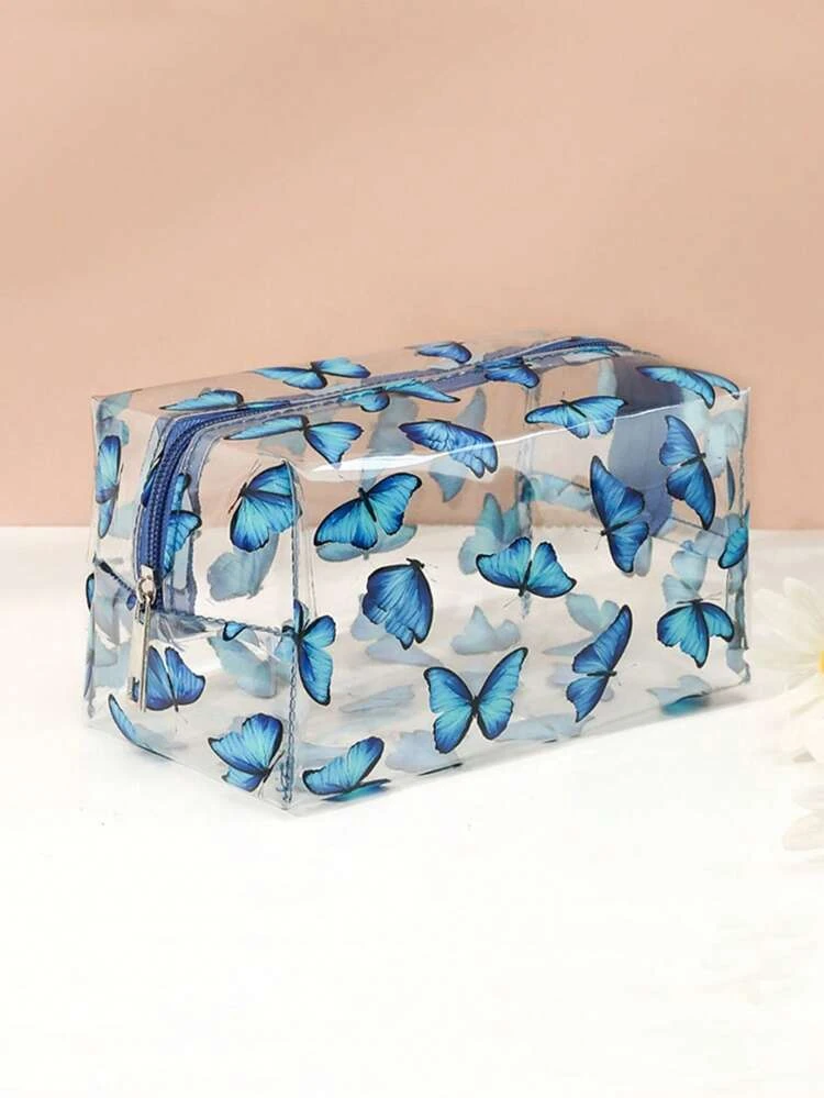 حقيبة مكياج للسفر من مادة PVC مقاومة للماء مع سحاب وتصميم شفاف لتخزين مستحضرات التجميل متعددة الوظائف.