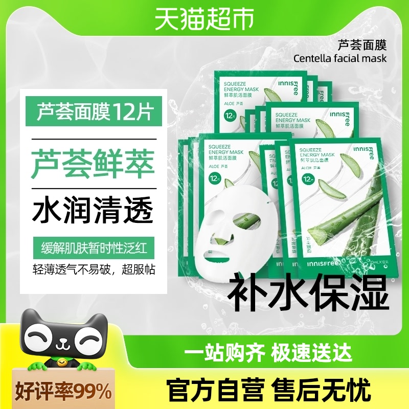 [شحن مجاني] قناع الوجه المرطب للعناية بالبشرة للنساء من Innisfree قناع خلاصة الصبار الطازج 12 قطعة لترطيب الصيف