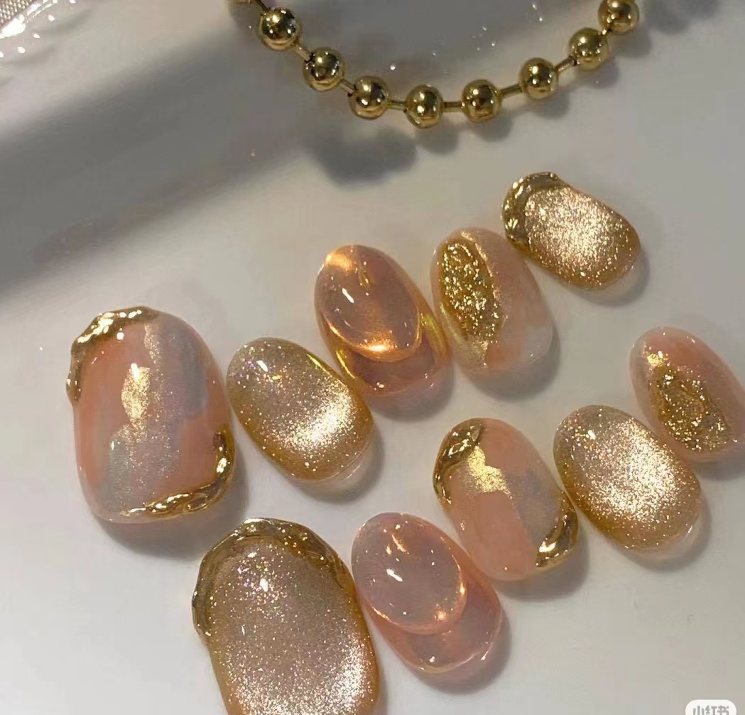 ارتداء الأظافر عين القطة الذهبية الخيالية على الطراز الياباني