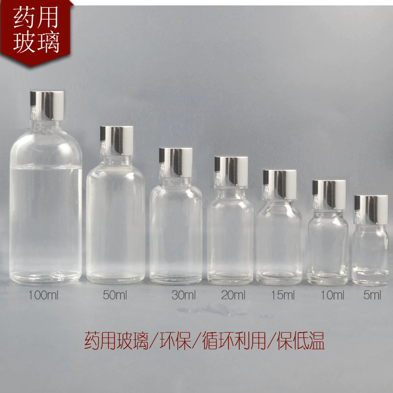 زجاجة زيت أساسية من الزجاج الشفاف المغطاة بأكسيد الألومنيوم مع قابس داخلي