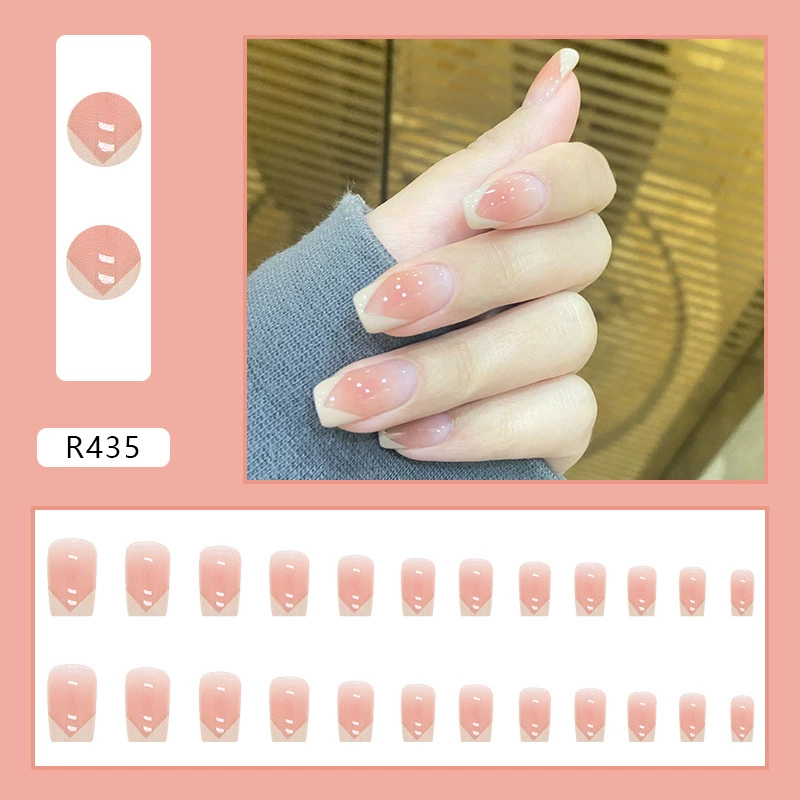ملصقات مانيكير جاهزة، ملصقات أظافر، مسحوق أظافر قابل للإزالة، صندوق بسيط مكون من 24 قطعة، مشهور بين مشاهير الإنترنت