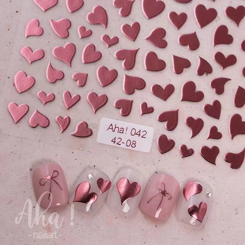 مسمار الفن لاصق ملصق السنة الجديدة النبيذ الأحمر الساخن الذهب والفضة القوس الحب DIY مسمار صائق
