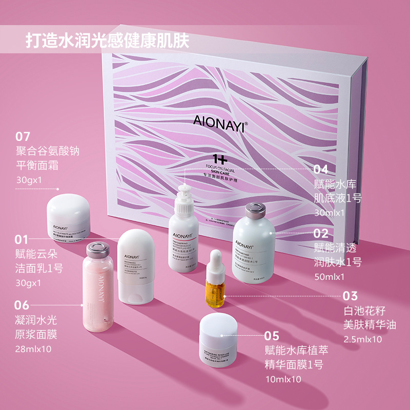 زيت الماء مع صندوق المكملات الغذائية، منظف الوجه بالأحماض الأمينية، زيت جمال البشرة، كريم شد الماء، قناع هريس خفيف