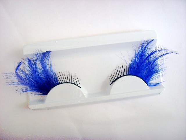 رموش صناعية مصنوعة يدويًا من الريش مبالغ فيها باللون الأزرق الياقوت للحفلات التنكرية للحفلات التنكرية Y148