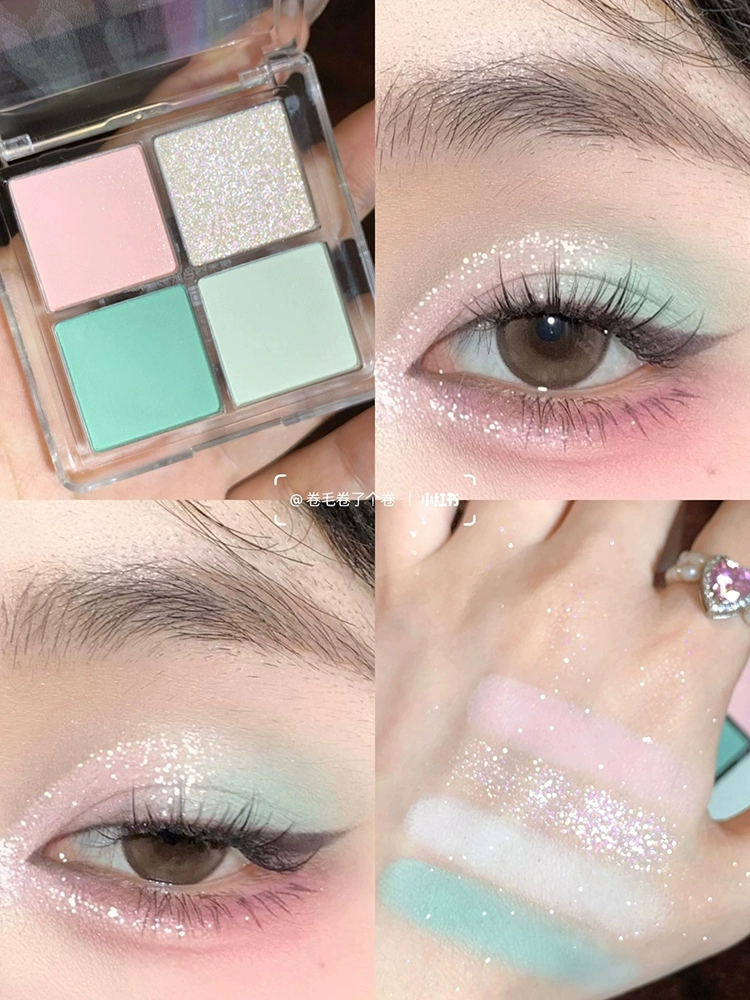 لوحة ظلال عيون برتقالية بأربعة ألوان 58 لون وردي وأخضر مكياج صيفي متباين منت آيس جيرل عيون واضحة مع لمسة من اللون الأخضر
