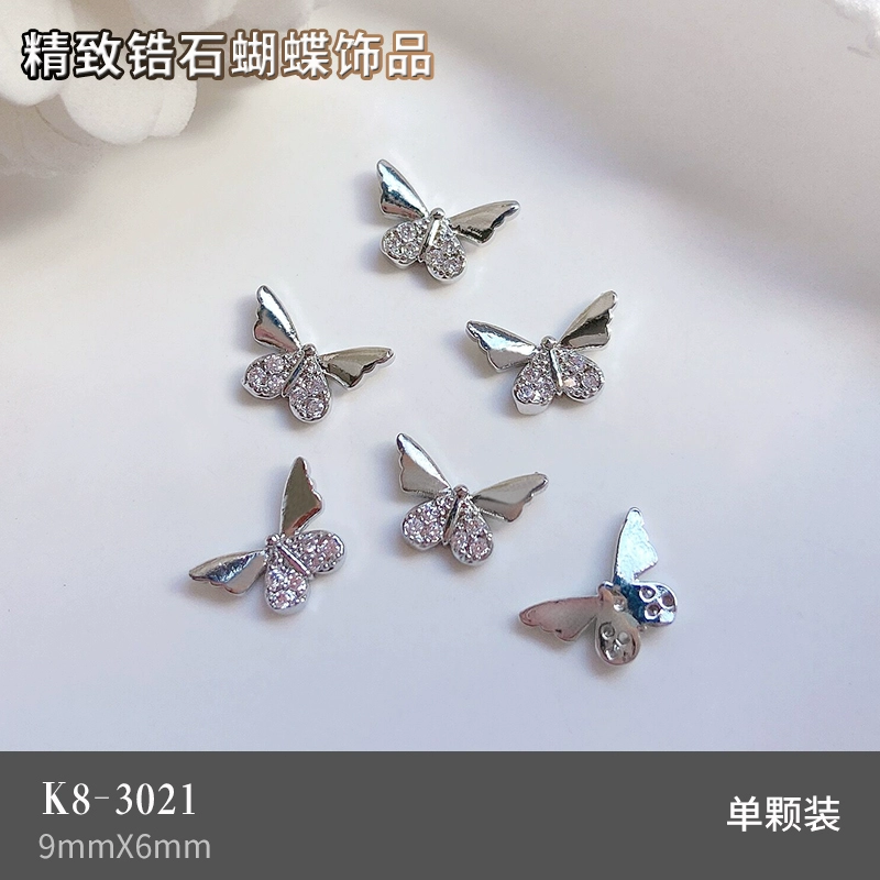 2023 مجوهرات مانيكير جديدة فضية مطلية بالزركون فراشة طويلة الأمد للحفاظ على اللون ضوء فاخر متعدد الاستخدامات نمط ساخن ملصق أظافر ماسي