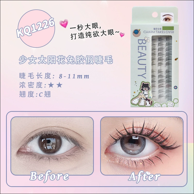 رموش كيكي الصناعية ذاتية اللصق خالية من الغراء رموش عباد الشمس الطبيعية المطعمة رموش الشيطان رموش الشيطان الطالبات