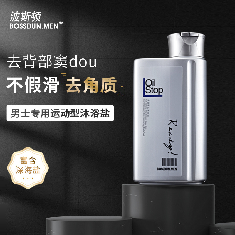 ملح الاستحمام المرطب بالزيت للرجال من بوسطن، مقشر للبشرة الميتة، منظف لطيف للظهر