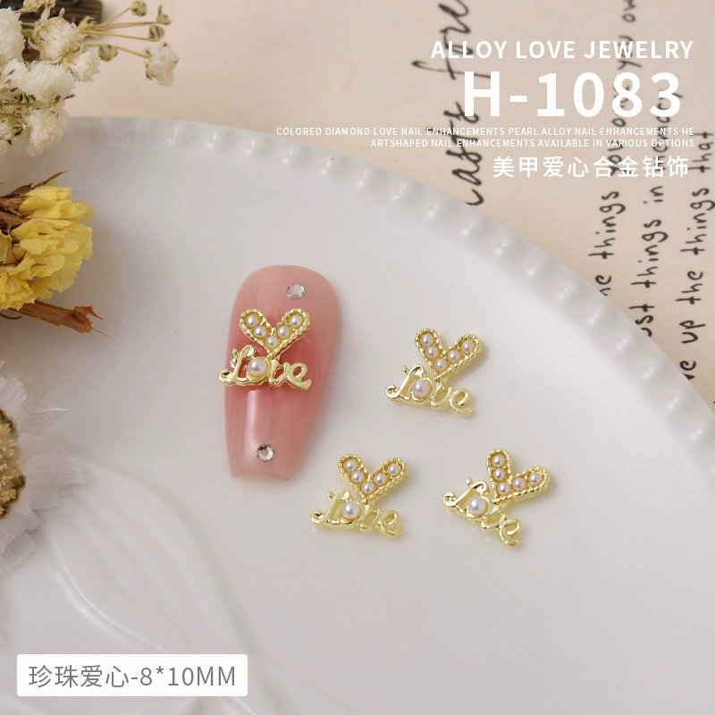 مسمار الفن الحب الماس والمجوهرات 2023 جديد ثلاثي الأبعاد لؤلؤة صغيرة فلاش الماس رسالة حب معدنية مسمار الديكور الماس