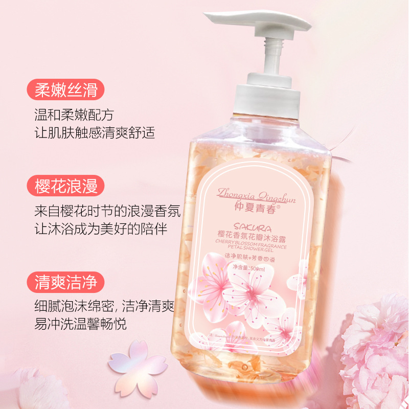 صابون الجسم بزهر الكرز للشباب في منتصف الصيف يرطب البشرة برائحة دائمة ورائحة بتلات الورد الحقيقية