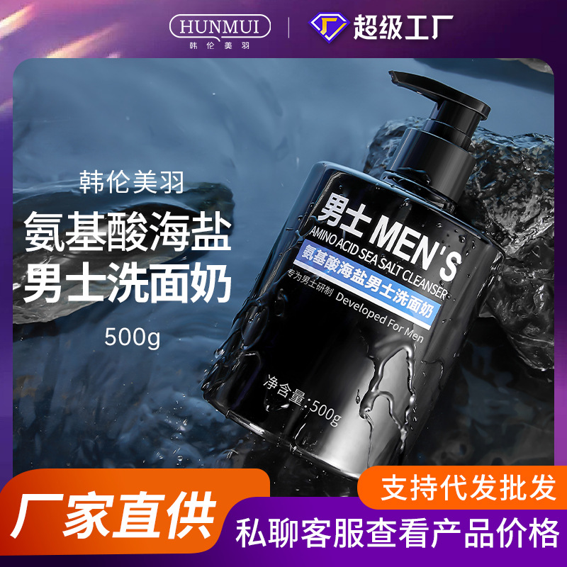 هان لون ميو حمض أميني ملح البحر منظف الوجه للرجال لطيف التطهير ترطيب ترطيب منظف الوجه للأولاد زجاجة كبيرة الحجم
