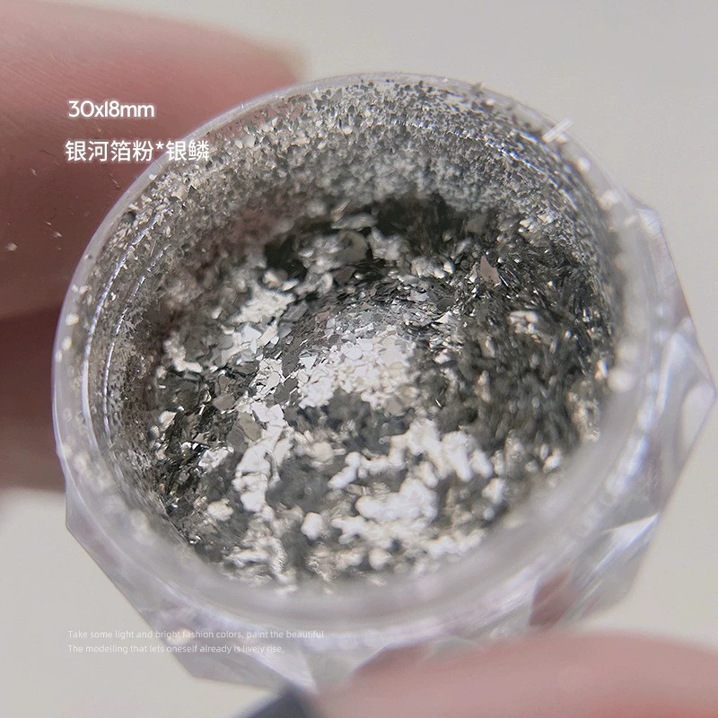 مانيكير المتفجرة غالاكسي مسحوق الفضة النقية مرآة سلسلة الفضة غرامة التألق مشرق غالاكسي مسحوق راعي البقر رقيقة جدا مسحوق احباط الفضة