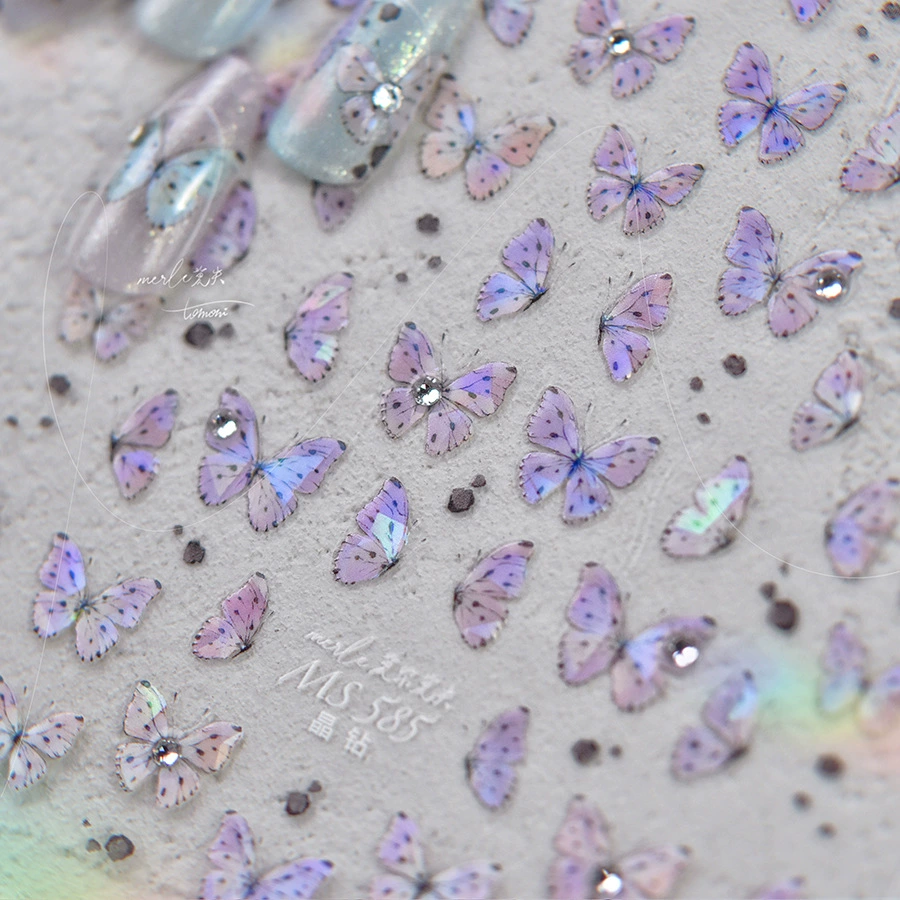 ملصق فني للأظافر على شكل فراشة من توموني، ملصق فني للأظافر على شكل فراشة من الألماس ثلاثي الأبعاد بالليزر الخيالي، منقوش عليه لاصق لتزيين الأظافر