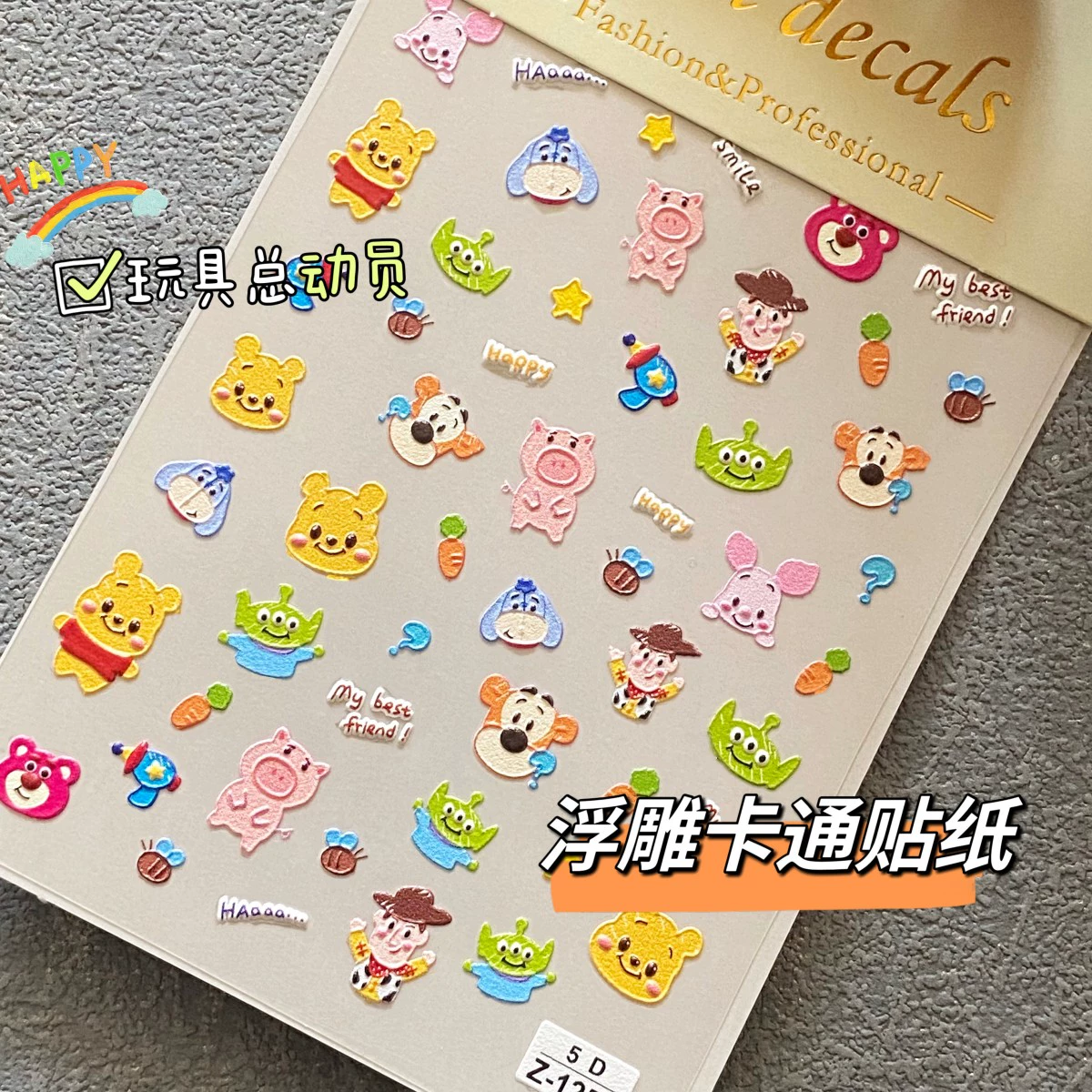 ملصقات فنية للأظافر ثلاثية الأبعاد 5D، ملصقات منقوشة على شكل دب العسل، ملصقات أظافر كرتونية لطيفة ويني ذا بوه