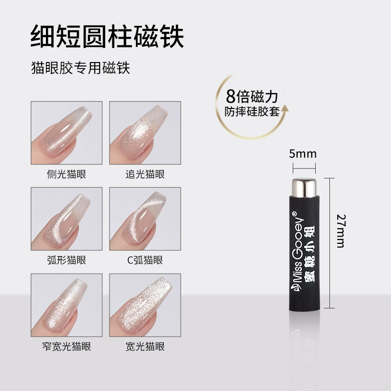 أداة مانيكير حجر مغناطيس عين القطة عين القط مربع أسطواني قوي للغاية طوق ذهبي رأس مزدوج مع غطاء واقي