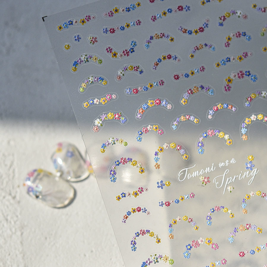 2024 ربيع جديد ملصقات زهرة الفن مسمار 5D الماس الكريستال ثلاثي الأبعاد ملصقات الأظافر الملونة وجذابة زهور الربيع