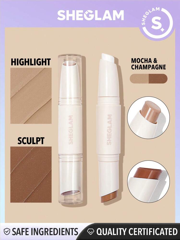 قلم كونتور مزدوج الرأس بألوان الموكا والشمبانيا لتسليط الضوء وتحديد الملامح، مصبوغ للغاية ولا يتلاشى.