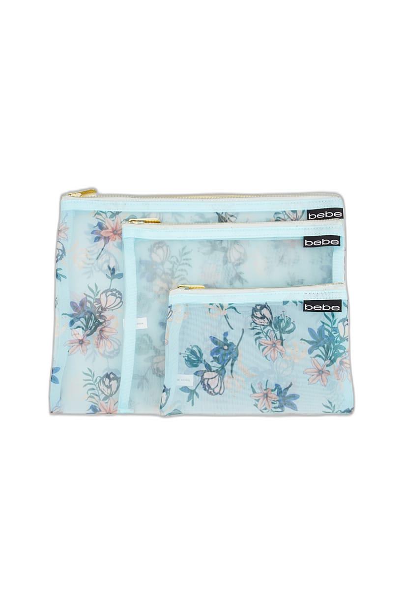 مجموعة حقائب سفر زرقاء مطبوعة بالزهور – 3 قطع.