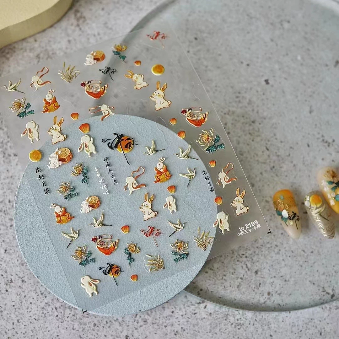 منتصف الخريف اليشم أرنب تشانغ يطير إلى القمر كرين مروحة مانيكير