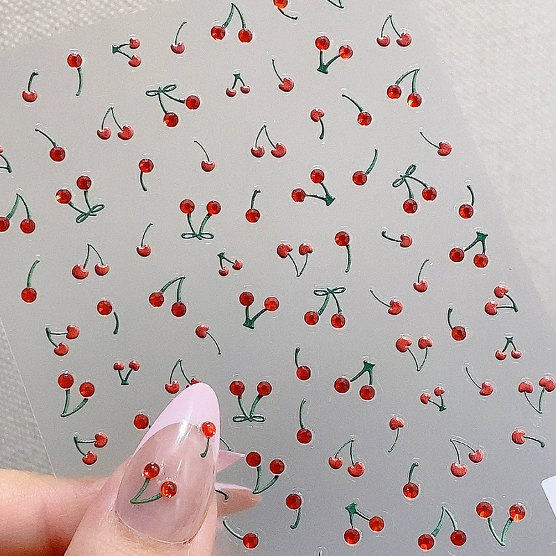 ملصقات أظافر توموني ثلاثية الأبعاد منقوشة على الطراز الياباني الجديد لعام 2024 ملصقات مزخرفة بالزهور الصغيرة على شكل فراشة الكرز
