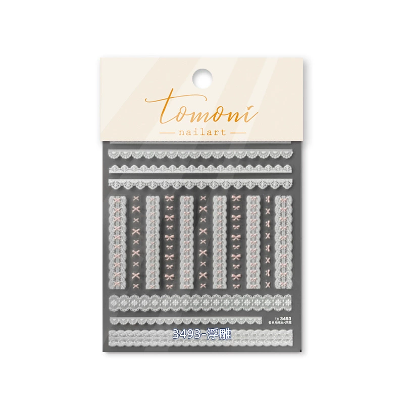 ملصقات فنية للأظافر منقوشة من Tomoni ثلاثية الأبعاد ملصقات أظافر كلاسيكية وردية اللون يابانية مقوسة دانتيل