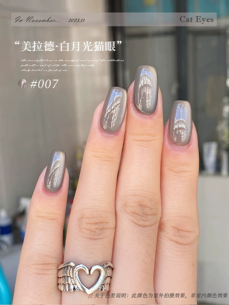 طلاء أظافر KaSi بخرز زجاجي من السيراميك الأبيض وكريستال عين القطة