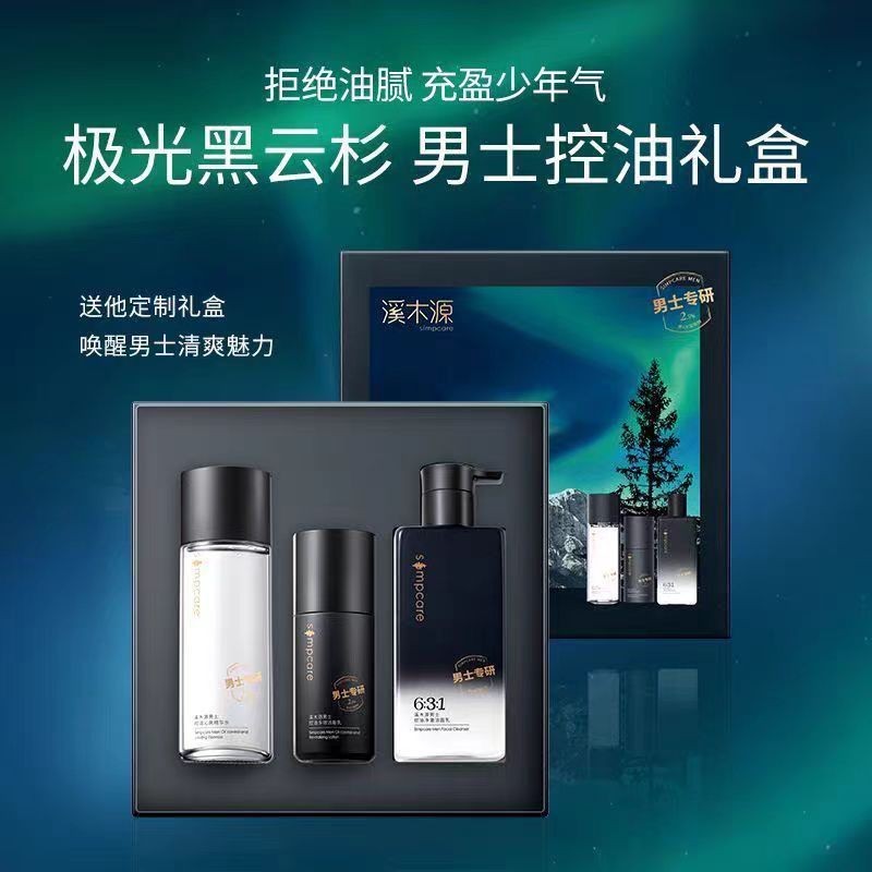 مجموعة Xi Muyuan للرجال مكونة من ثلاث قطع، للتنظيف العميق والتحكم في الزيوت، ومنعش ونظيف ومرطب للعناية بالبشرة، مجموعة من ثلاث قطع