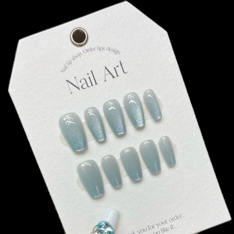 [لقطة حقيقية أصلية] مانيكير أظافر صيفي رائع وملح البحر وعين القطة الزرقاء الجليدية مصنوع يدويًا