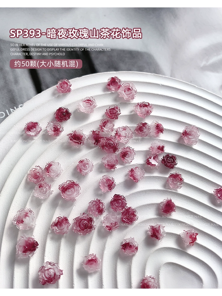 مسمار الفن لونين كاميليا المجوهرات الإنترنت المشاهير الساخنة نمط الرجعية الظلام ليلة روز زهرة التدرج الراتنج مسمار الملحقات