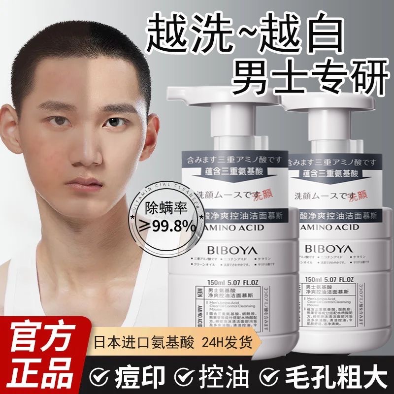 حمض أميني للرجال نظيف وبارد للتحكم في الزيت، موس فقاعة الرؤوس السوداء لإزالة منظف الوجه، غسول تنظيف المسام المرطب